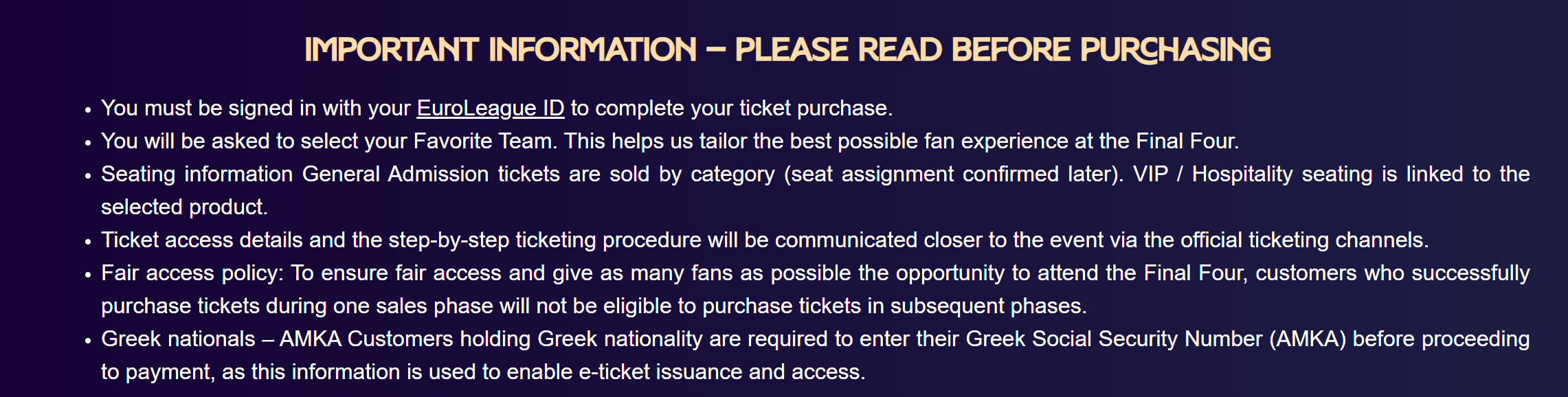 EuroLeague Final Four | Official Ticket Store. All rights reserved